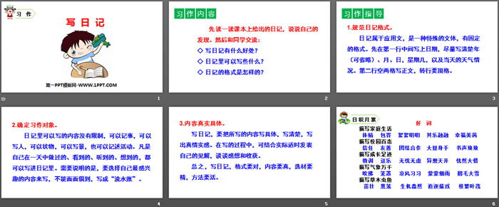关键词:部编人教版三年级上册语文PPT课件免费下载,写日记PPT下载,.PPT格式;