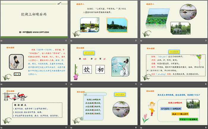 关键词:部编人教版三年级上册语文PPT课件免费下载,饮湖上初晴后雨PPT下载,.PPT格式;