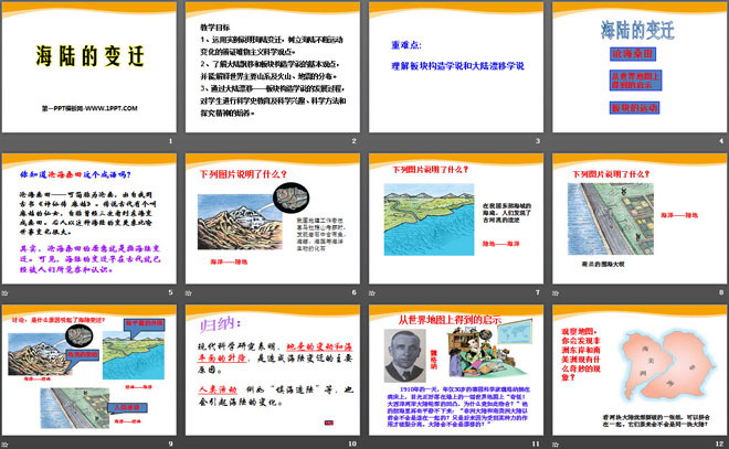 关键词:上海教育版六年级下册地理PPT课件免费下载,海陆的变迁PPT下载,.PPT格式;
