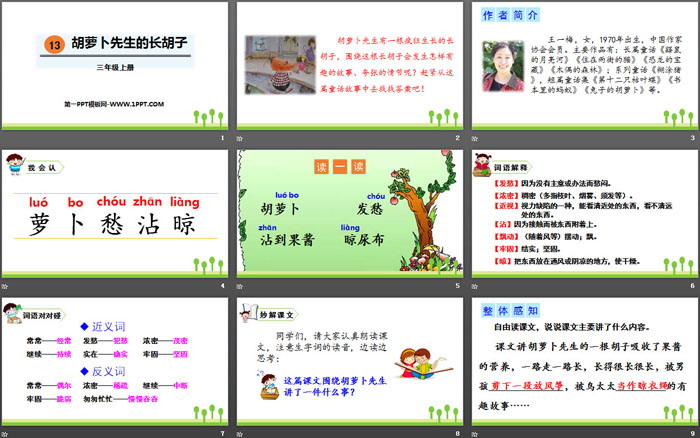 关键词:部编人教版三年级上册语文PPT课件免费下载,胡萝卜先生的长胡子PPT下载,.PPT格式;
