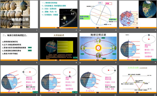关键词:上海教育版六年级下册地理PPT课件免费下载,地球的公转PPT下载,.PPT格式;