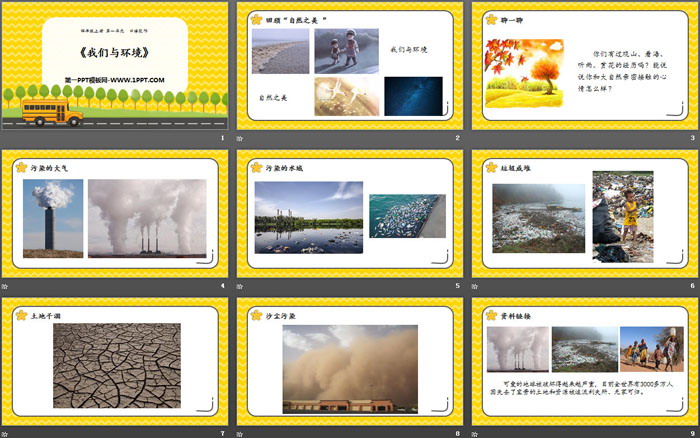 关键词:部编人教版四年级上册语文PPT课件免费下载,我们与环境PPT下载,.PPT格式;