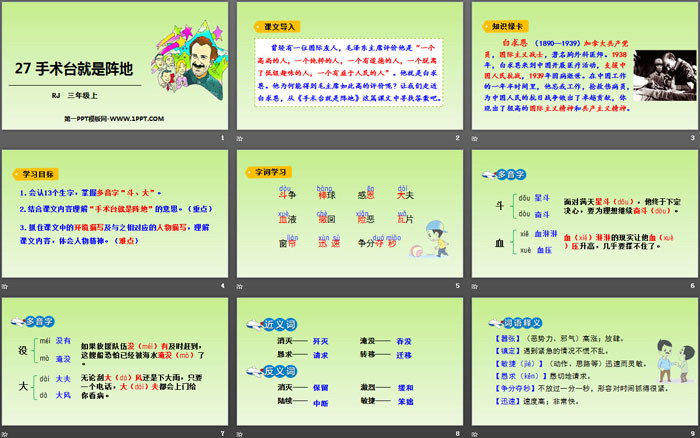 关键词:部编人教版三年级上册语文PPT课件免费下载,手术台就是阵地PPT下载,.PPT格式;