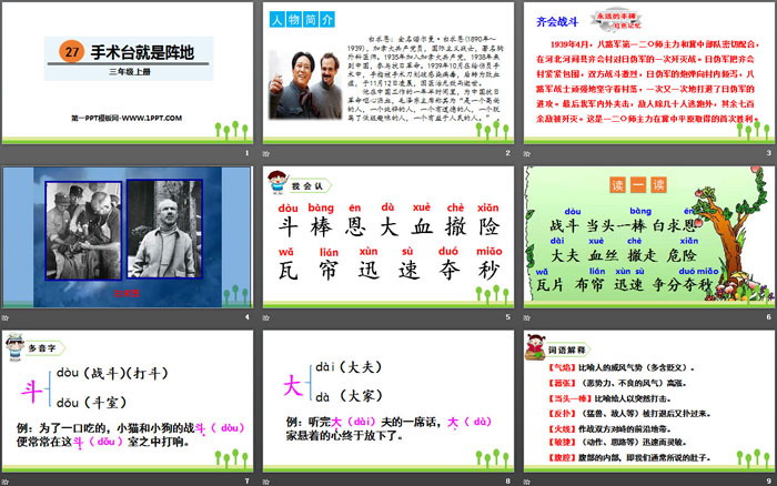 关键词:部编人教版三年级上册语文PPT课件免费下载,手术台就是阵地PPT下载,.PPT格式;