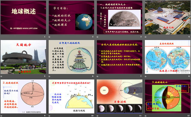 关键词:上海教育版六年级下册地理PPT课件免费下载,地球概述PPT下载,.PPT格式;
