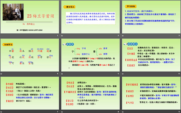 梅兰芳蓄须PPT,第三部分内容:字词学习
