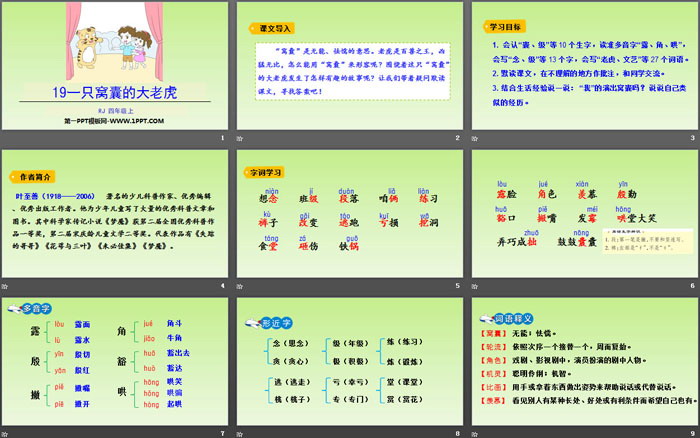 一只窝囊的大老虎PPT,第四部分内容:字词学习