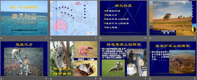 关键词:上海教育版六年级上册地理PPT课件免费下载,独占一块大陆的国家澳大利亚PPT下载,.PPT格式;