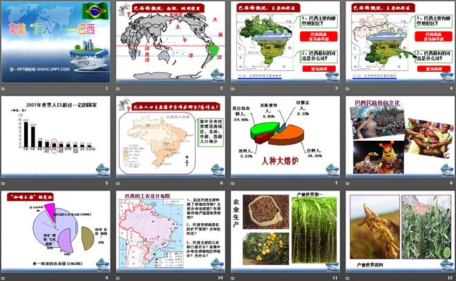 关键词:上海教育版六年级上册地理PPT课件免费下载,南美巨人巴西PPT下载,.PPT格式;