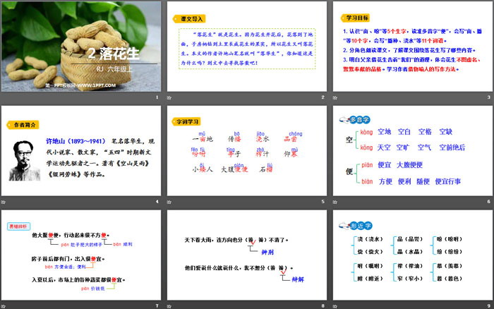 落花生PPT,第三部分内容:字词学习