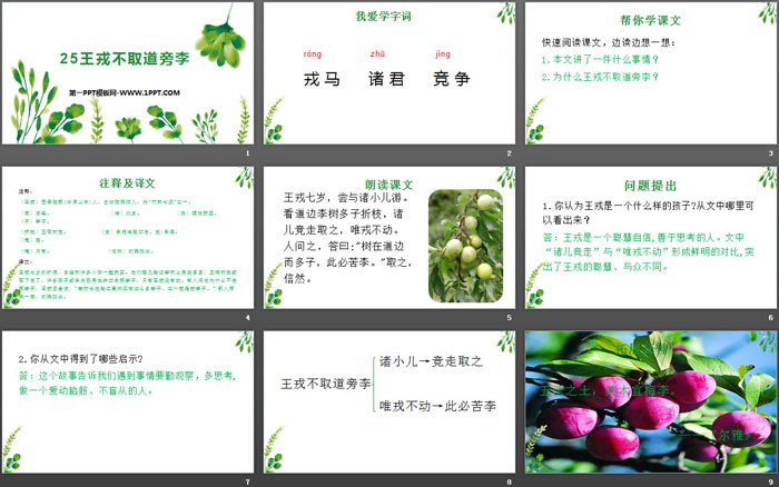 关键词:部编人教版四年级上册语文PPT课件免费下载,王戎不取道旁李PPT下载,.PPT格式;