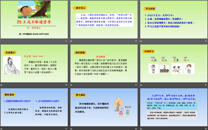 关键词:部编人教版四年级上册语文PPT课件免费下载,王戎不取道旁李PPT下载,.PPT格式;