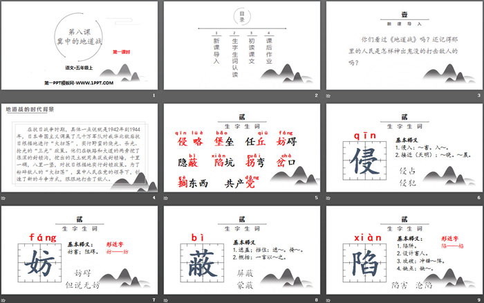 关键词:部编人教版五年级上册语文PPT课件免费下载,冀中的地道战PPT下载,.PPT格式;
