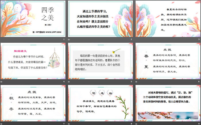 四季之美PPT,第四部分内容:背诵喜欢的自然段