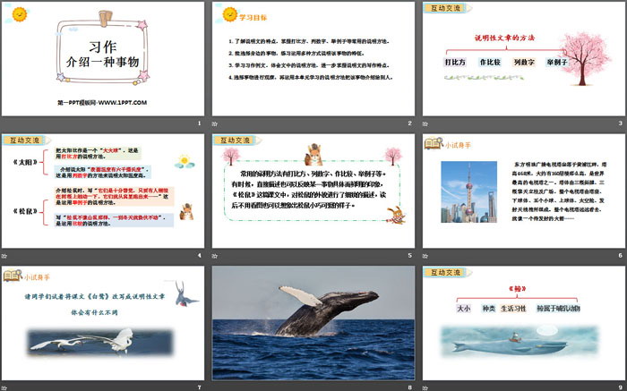 1.了解说明文的特点,掌握打比方、列数字、举例子等常用的说明方法。