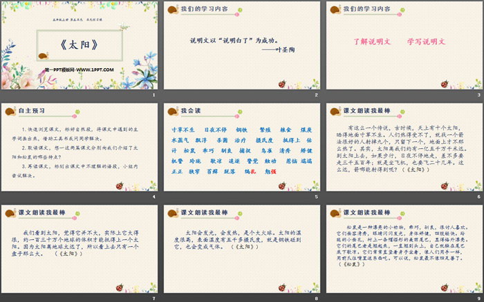 太阳PPT,第三部分内容:课文朗读我最棒