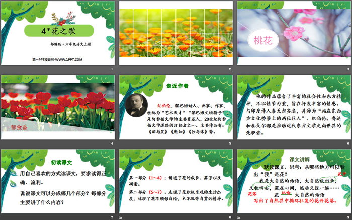 关键词:部编人教版六年级上册语文PPT课件免费下载,花之歌PPT下载,.PPT格式;