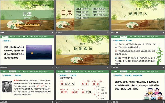 2.了解月亮的足迹都会出现在哪里,品味月色的美。理清课文的写作顺序。