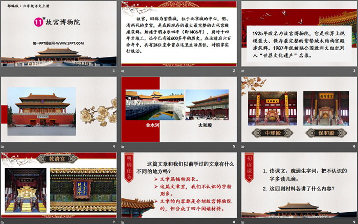 关键词:部编人教版六年级上册语文PPT课件免费下载,故宫博物院PPT下载,.PPT格式;