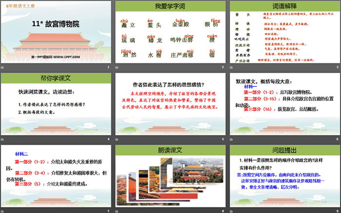 关键词:部编人教版六年级上册语文PPT课件免费下载,故宫博物院PPT下载,.PPT格式;