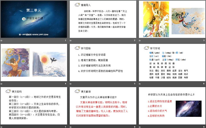 宇宙生命之谜PPT,第三部分内容:学习字词