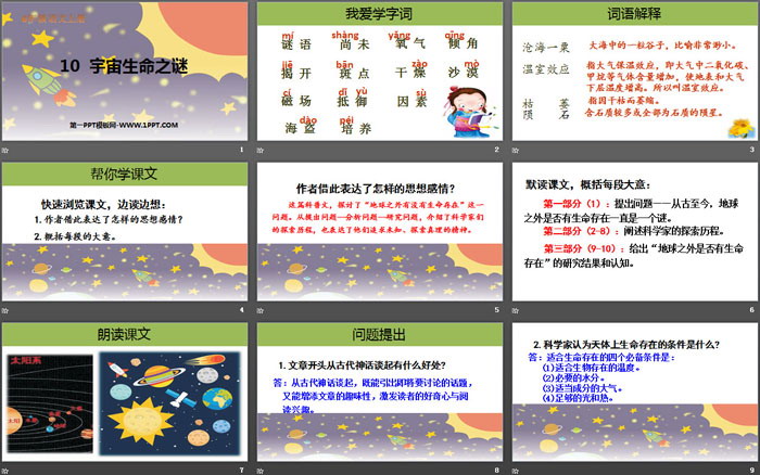 宇宙生命之谜PPT,第二部分内容:帮你学课文