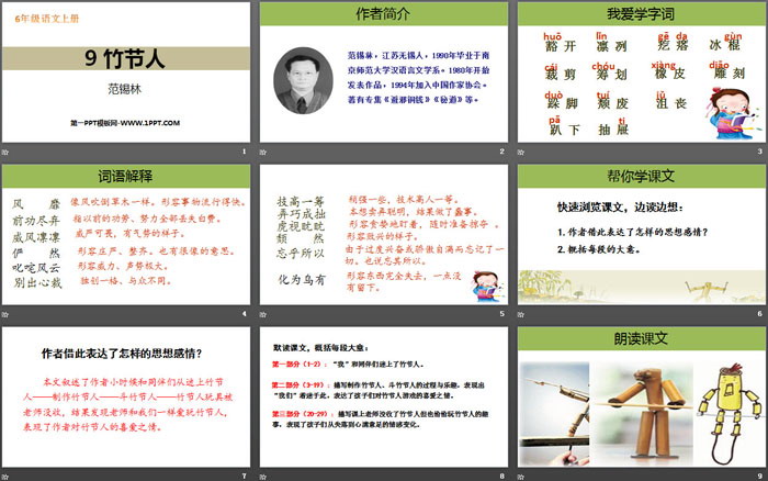 关键词:部编人教版六年级上册语文PPT课件免费下载,竹节人PPT下载,.PPT格式;