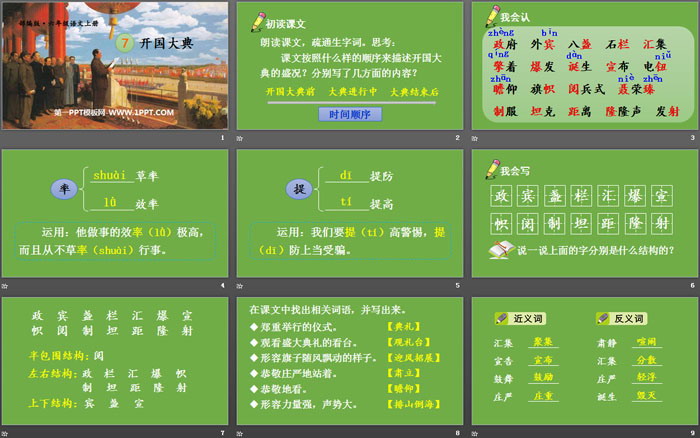 关键词:部编人教版六年级上册语文PPT课件免费下载,开国大典PPT下载,.PPT格式;