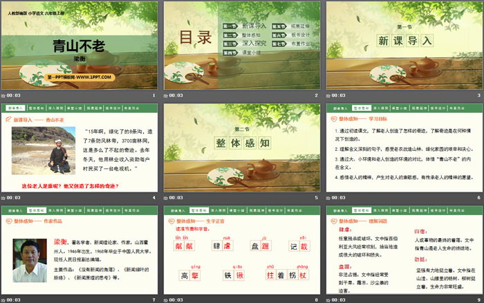关键词:部编人教版六年级上册语文PPT课件免费下载,青山不老PPT下载,.PPT格式;