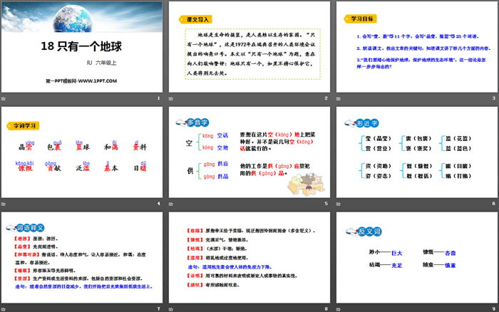 关键词:部编人教版六年级上册语文PPT课件免费下载,只有一个地球PPT下载,.PPT格式;