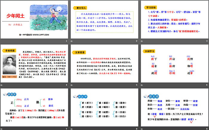 关键词:部编人教版六年级上册语文PPT课件免费下载,少年闰土PPT下载,.PPT格式;