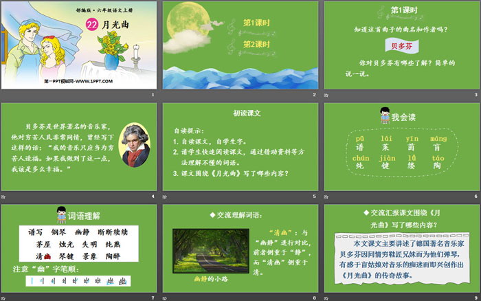 关键词:部编人教版六年级上册语文PPT课件免费下载,月光曲PPT下载,.PPT格式;