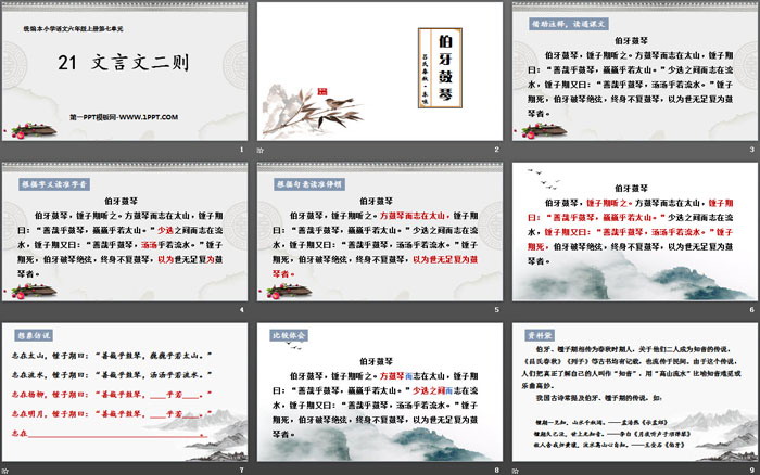 关键词:部编人教版六年级上册语文PPT课件免费下载,文言文二则PPT下载,伯牙鼓琴PPT下载,书戴嵩画牛PPT下载,.PPT格式;