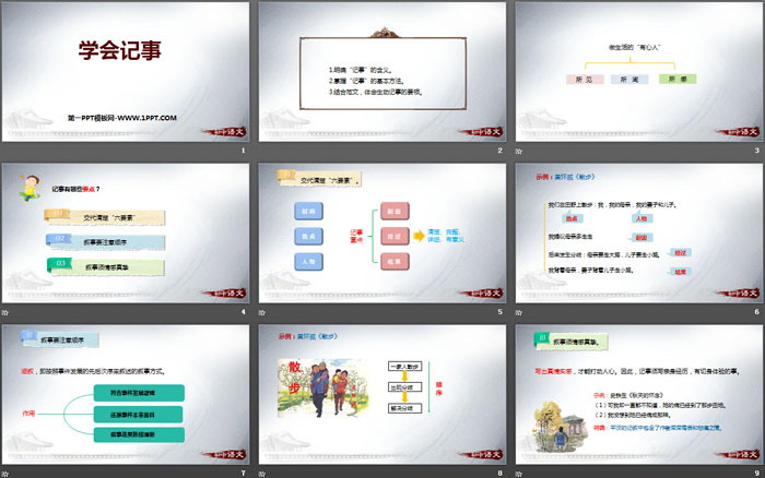 写作学会记事PPT,第二部分内容:交代清楚“六要素”。