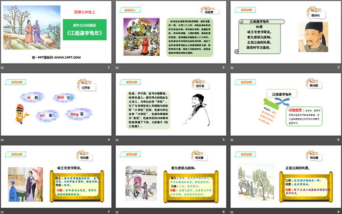 关键词:部编人教版七年级上册语文PPT课件免费下载,江南逢李龟年PPT下载,课外古诗词诵读PPT下载,.PPT格式;