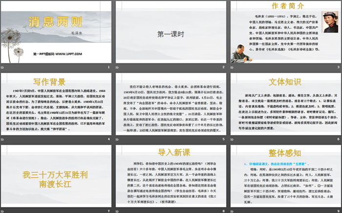 关键词:部编人教版八年级上册语文PPT课件免费下载,人民解放军百万大军横渡长江PPT下载,我三十万大军胜利南渡长江PPT下载,消息两则PPT下载,.PPT格式;