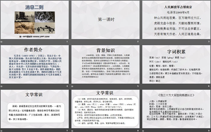 关键词:部编人教版八年级上册语文PPT课件免费下载,人民解放军百万大军横渡长江PPT下载,我三十万大军胜利南渡长江PPT下载,消息两则PPT下载,.PPT格式;