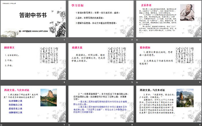 关键词:部编人教版八年级上册语文PPT课件免费下载,答谢中书书PPT下载,短文两篇PPT下载,.PPT格式;