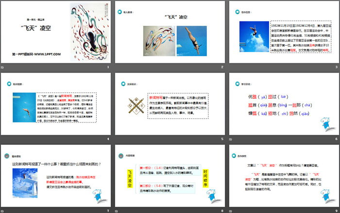 飞天凌空PPT,第二部分内容:学习字词: