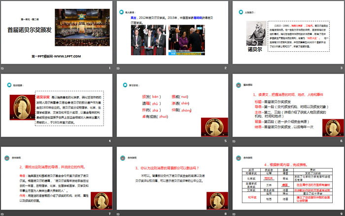 首届诺贝尔奖颁发PPT,第三部分内容:整体感知