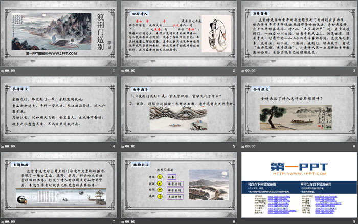 关键词:部编人教版八年级上册语文PPT课件免费下载,渡荆门送别PPT下载,唐诗五首PPT下载,.PPT格式;