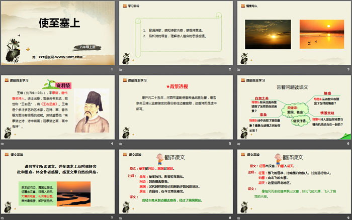 关键词:部编人教版八年级上册语文PPT课件免费下载,使至塞上PPT下载,唐诗五首PPT下载,.PPT格式;