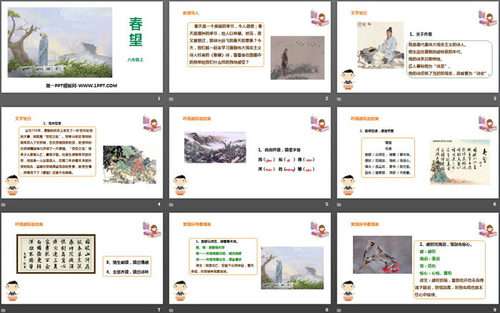 关键词:部编人教版八年级上册语文PPT课件免费下载,春望PPT下载,.PPT格式;