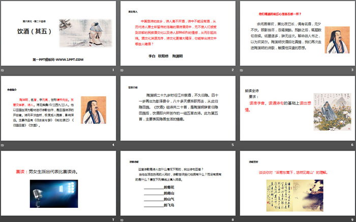 关键词:部编人教版八年级上册语文PPT课件免费下载,饮酒PPT下载,.PPT格式;