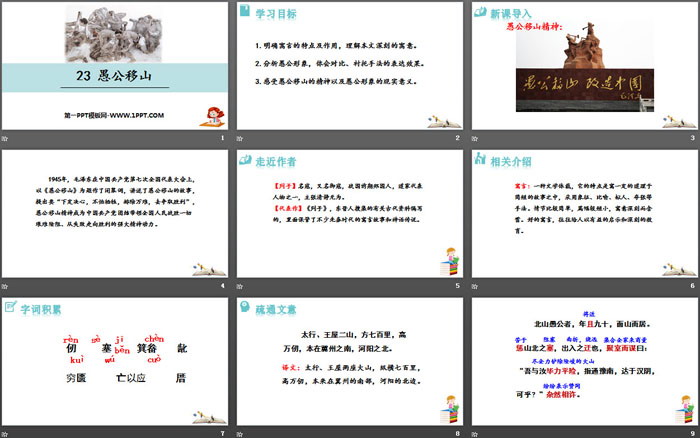 3.感受愚公移山的精神以及愚公形象的现实意义。