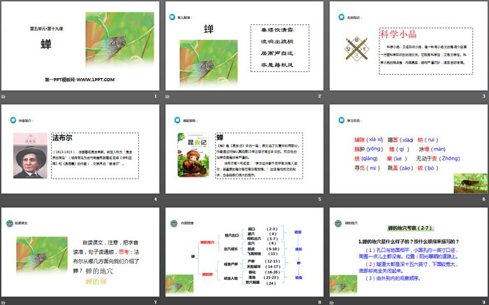 蝉PPT,第六部分内容:课堂小结