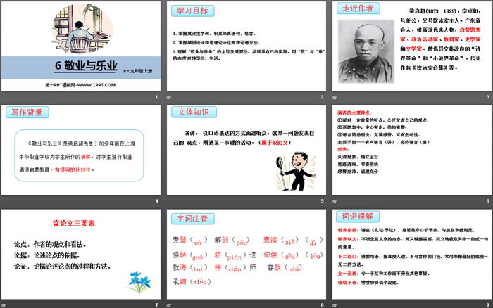 关键词:部编人教版九年级上册语文PPT课件免费下载,敬业与乐业PPT下载,.PPT格式;