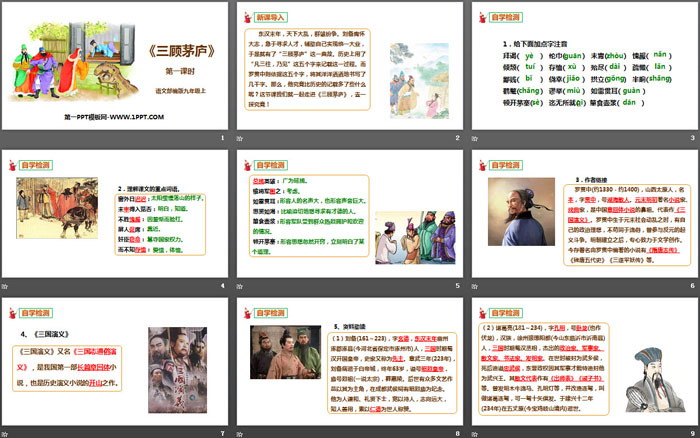 三顾茅庐PPT,第二部分内容:自学检测