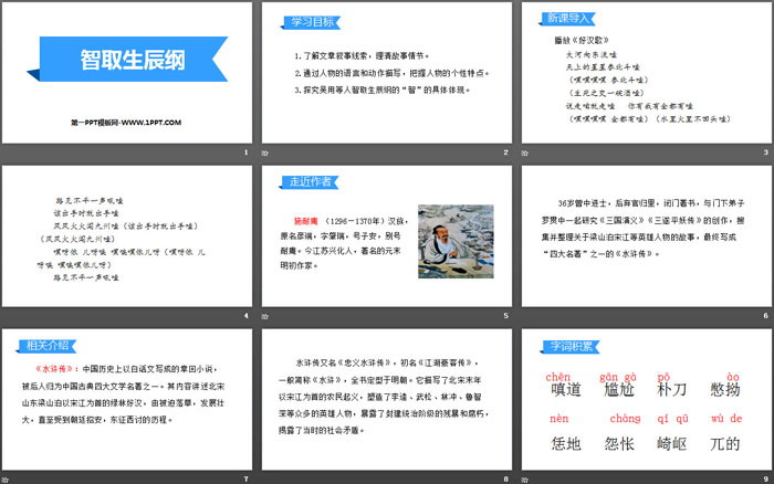 关键词:部编人教版九年级上册语文PPT课件免费下载,智取生辰纲PPT下载,.PPT格式;