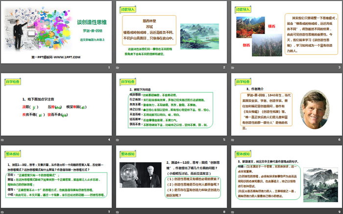 关键词:部编人教版九年级上册语文PPT课件免费下载,谈创造性思维PPT下载,.PPT格式;